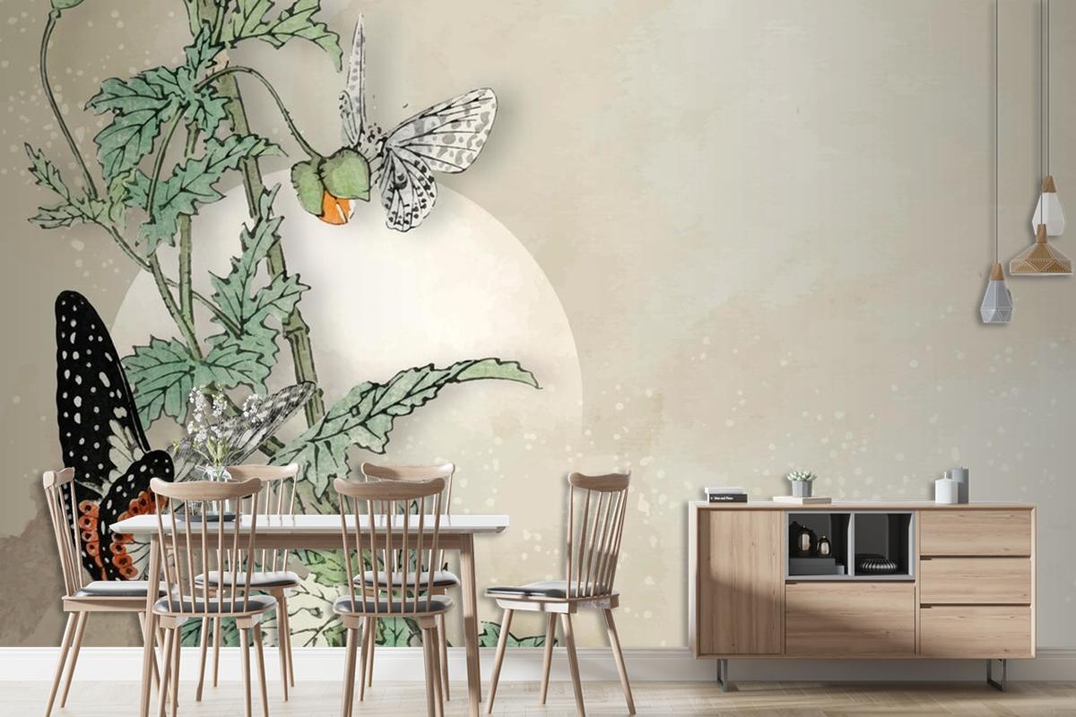 Yapraklı Kelebek Çerçeve Tasarımı Duvar Kağıdı