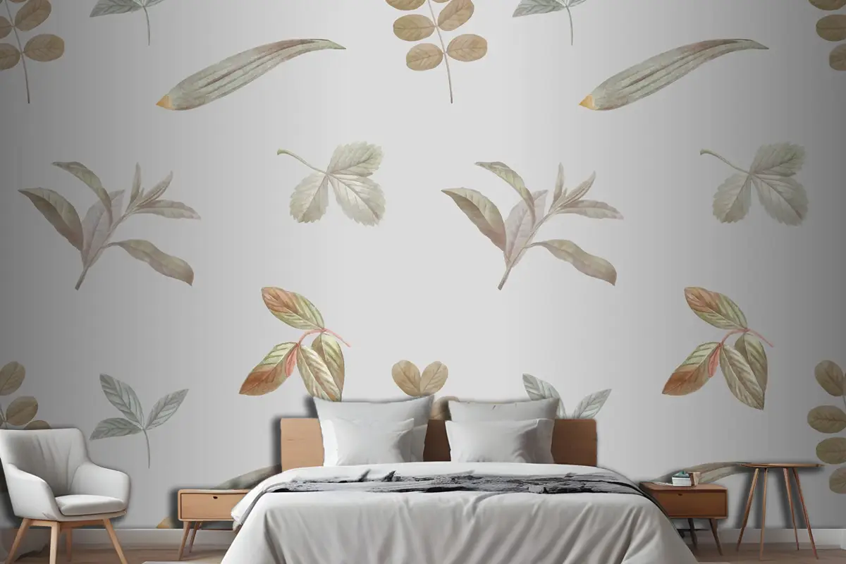 Yatak Odası Duvar Kağıdı Gri Arka Planda Yeşillik Dikişsiz Desen