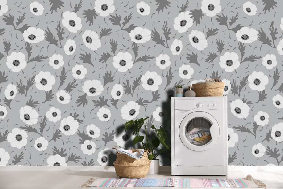 Yatay Ve Dikey Olarak Tekrarlanabilir Sorunsuz Tek Renkli Çiçek Desenli Duvar Kağıdı