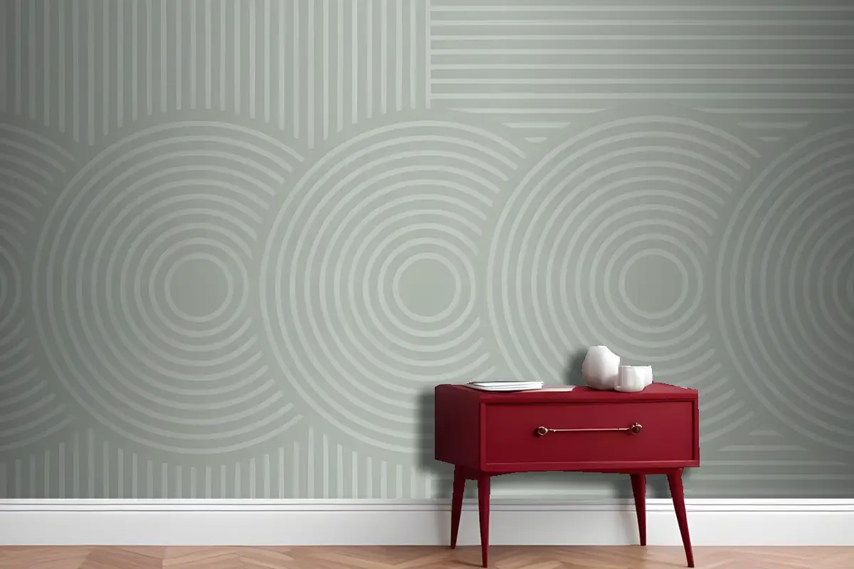 Yeşil Antre Hol Koridor Duvar Kağıdı Duvarında Eşmerkezli Daireler Ve Dikey Çizgiler