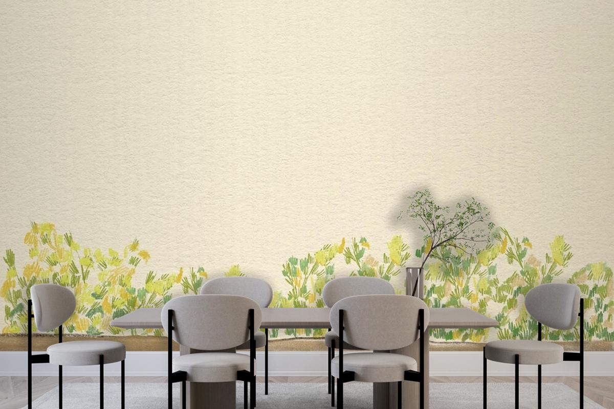 Yeşil Çalılar Arka Plan Renkli Kalem Yemek Odası Duvar Kağıdı