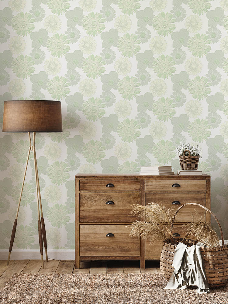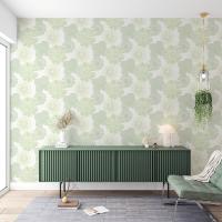 Yeşil Çiçeli Hafif Parlak Ucuz Duvar Kağıdı 53391