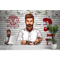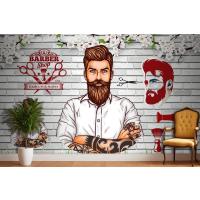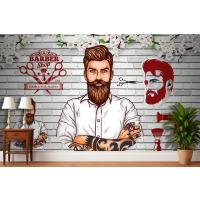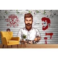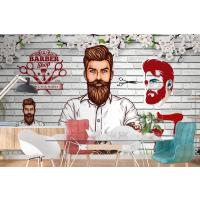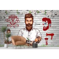 Yeşil Çim Taş Desen Arka Plan Erkek Kuaför Duvar Kağıdı