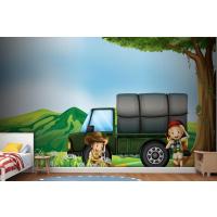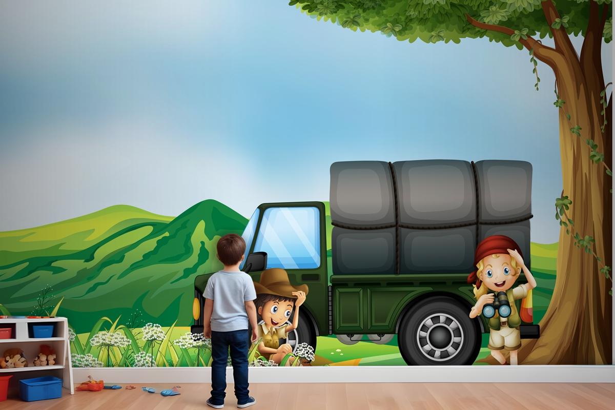Yeşil Kamyonun Yanında Bir Kız Ve Bir Erkek Çocuk Odası Duvar Kağıdı