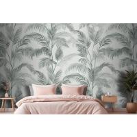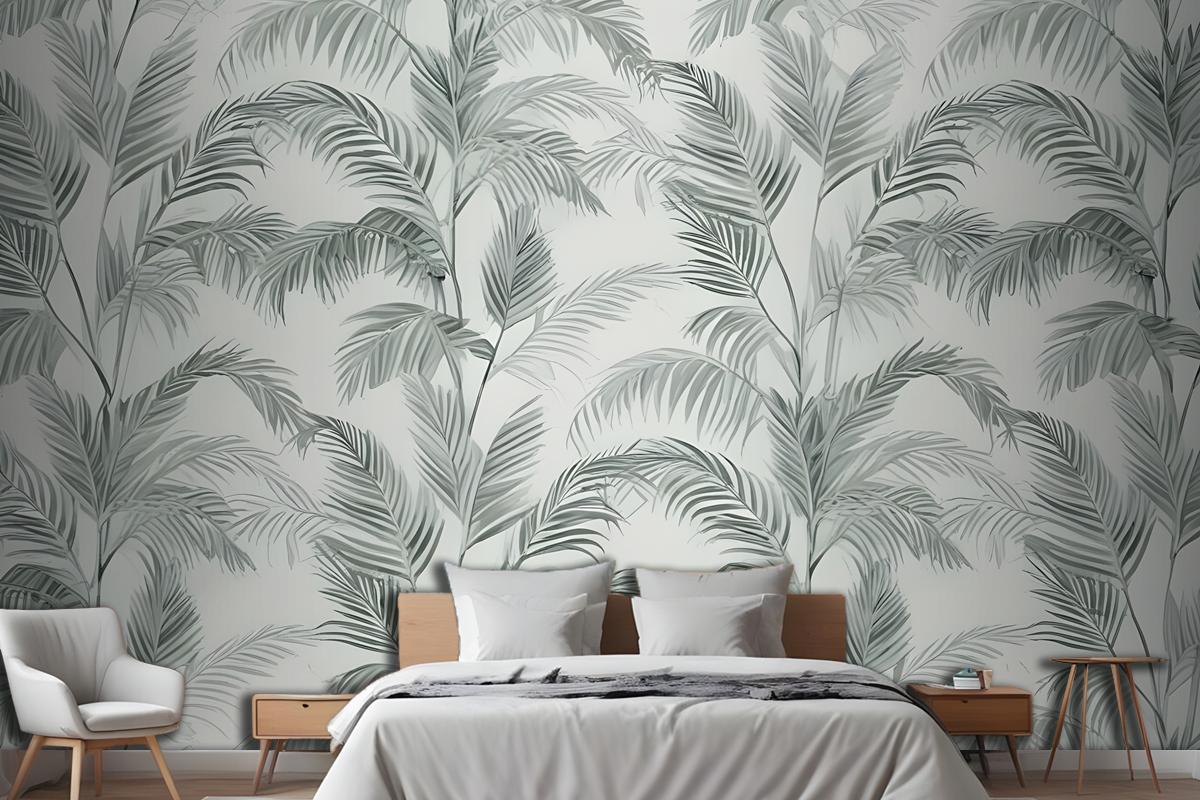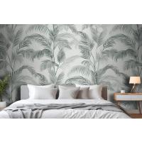 Yeşil Mürekkep Tropikal Desen Yatak Odası Duvar Kağıdı