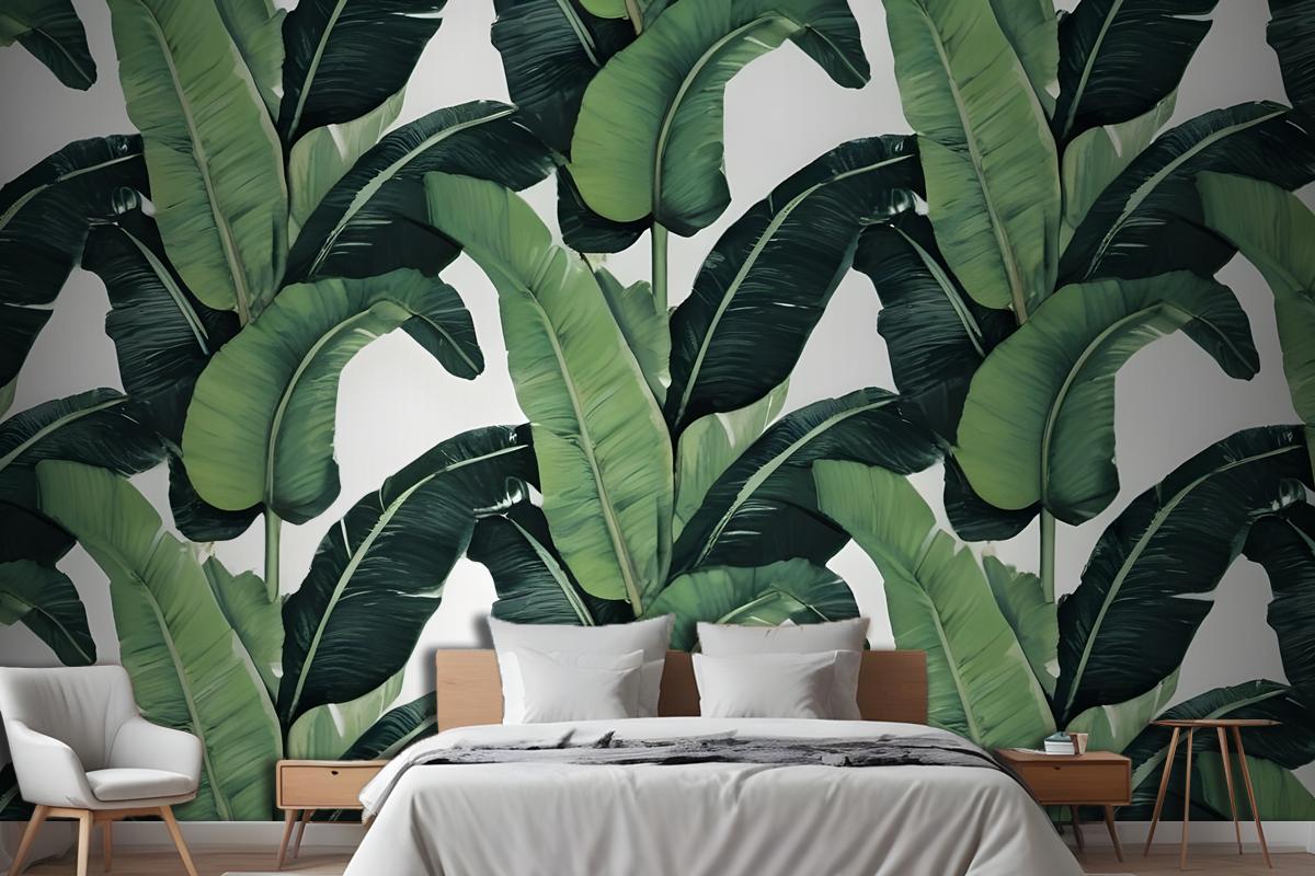 Yeşil Muz Yaprağı Desen Yatak Odası Duvar Kağıdı