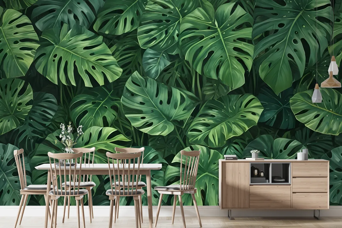 Yeşil Tropikal Yapraklar Duvar Kağıdı