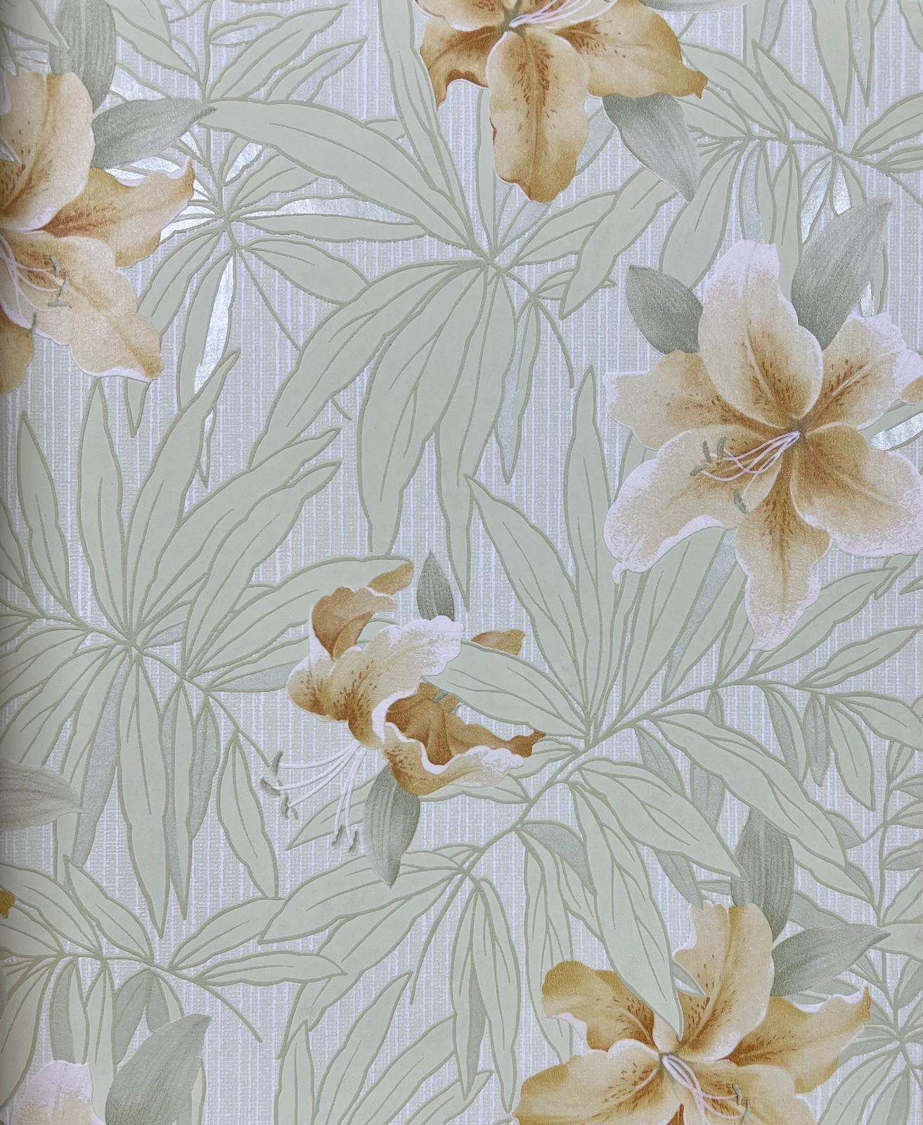 Yeşil Yapraklar Turuncu Sarı Çiçekli Tropikal Duvar Kağıdı 669541