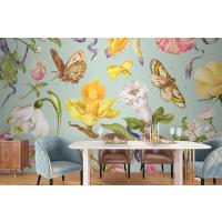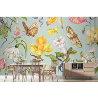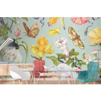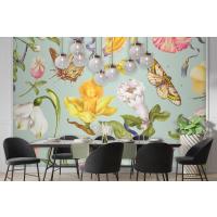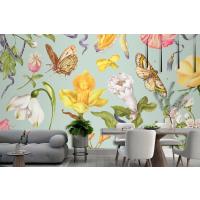 Yeşil Zemin Üzerine Renkli Vintage Çiçek Desenli Duvar Kağıdı