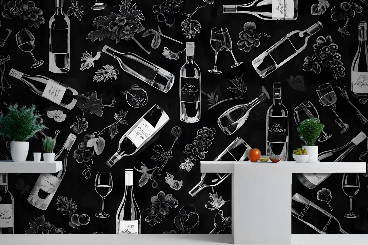 Yiyecek Ve Şarap Kara Tahta Mutfak Duvar Kağıdı