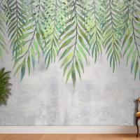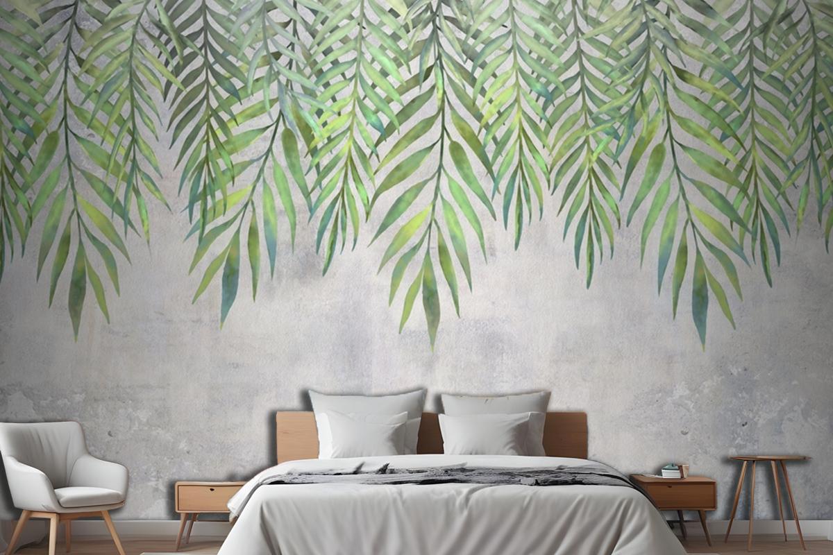 Yukarıdan Asılı Suluboya Yaprakları Yatak Odası Duvar Kağıdı