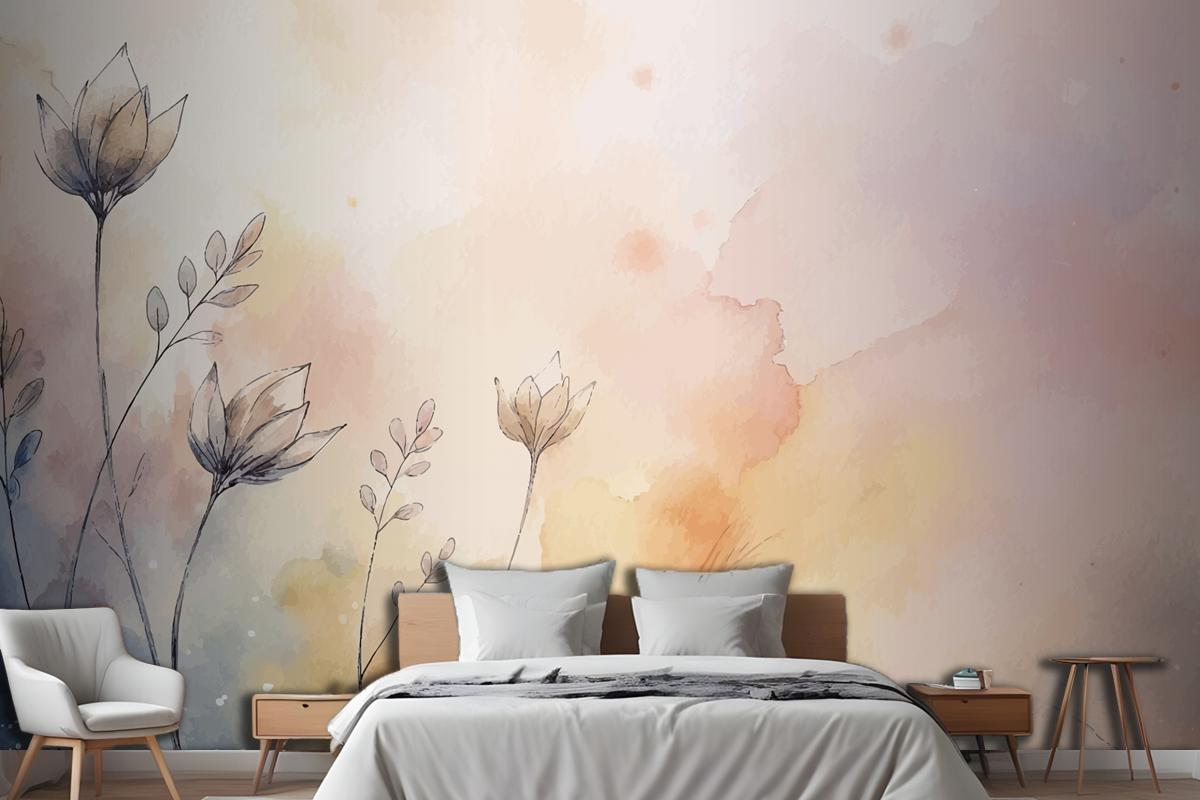 Yumuşak Pastel Çiçek Suluboya Arka Plan Yatak Odası Duvar Kağıdı