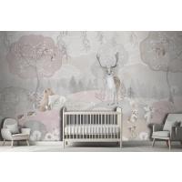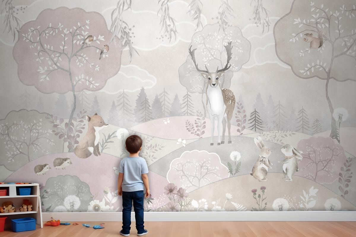 Yumuşak Renkler Vahşi Hayvanlar Çocuk Odası Duvar Kağıdı