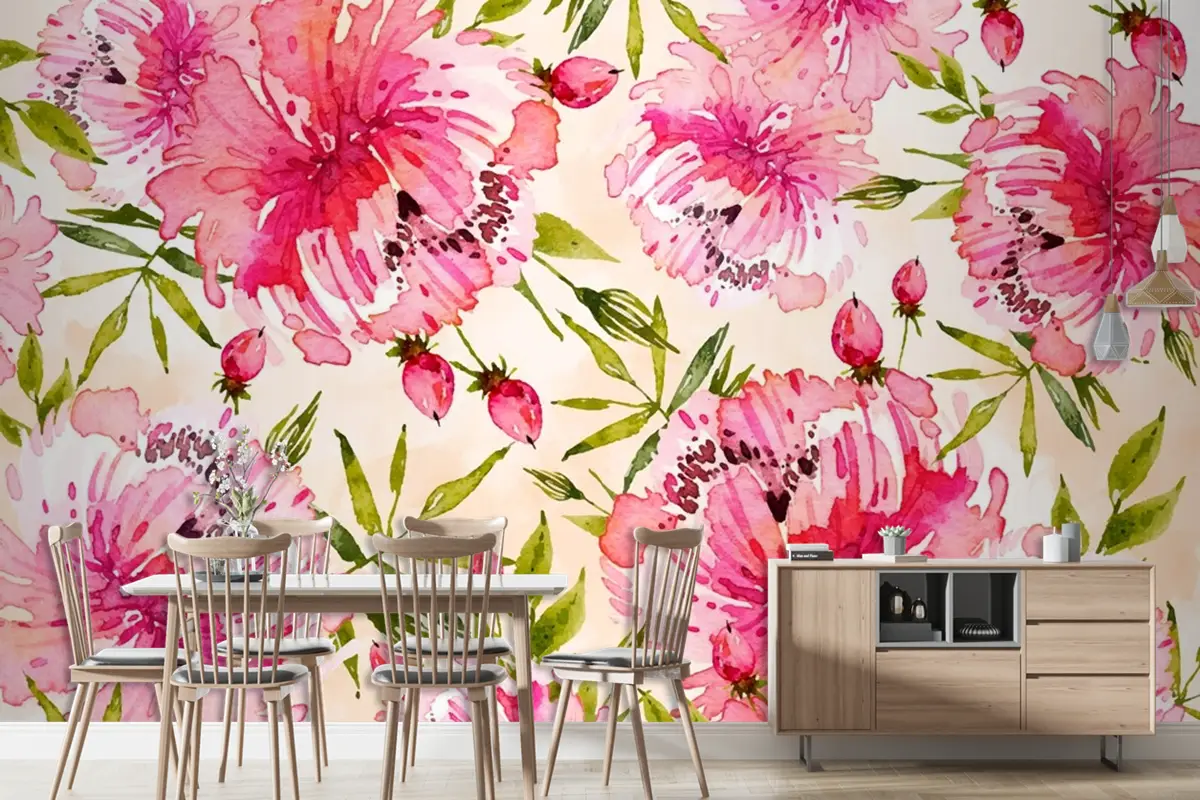 Yumuşak Renklerle Arka Plan Çiçek Suluboya Duvar Kağıdı