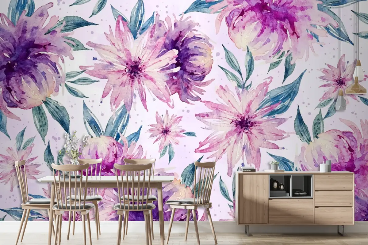 Yumuşak Renklerle Arka Plan Suluboya Çiçek Duvar Kağıdı