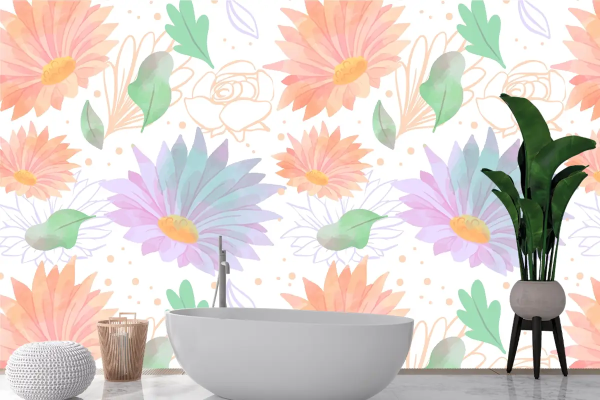 Yumuşak Renklerle Çiçekli Arka Plan Banyo Duvar Kağıdı