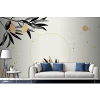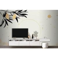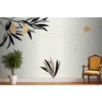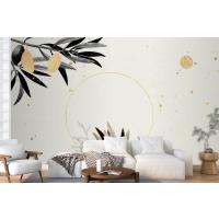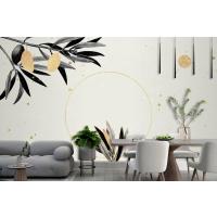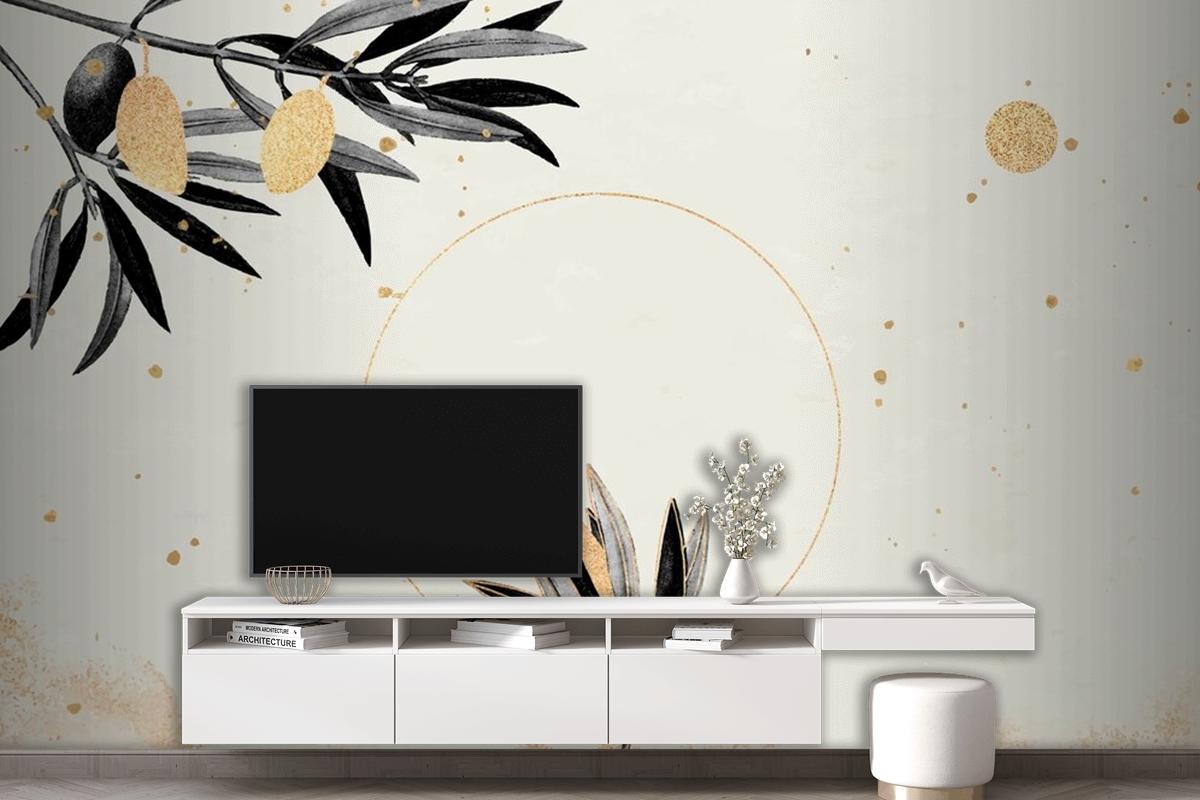 Zeytin Dallı Yuvarlak Altın Çerçeve Oturma Odası Duvar Kağıdı